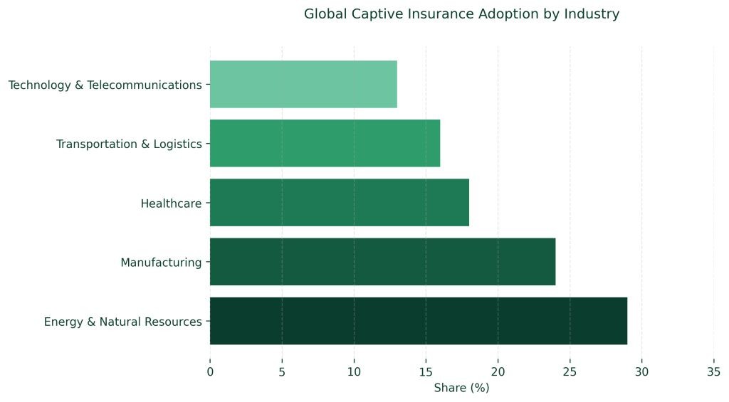 Captive insurance adoption varies across industries depending on risk complexity and capital intensity. Sectors characterized by large operational exposures and significant asset values tend to rely more heavily on captive structures.