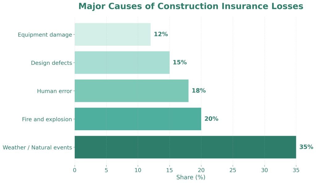 Emerging markets, particularly in Asia and the Middle East, have become major drivers of construction insurance demand due to rapid urbanization and large-scale infrastructure programs.