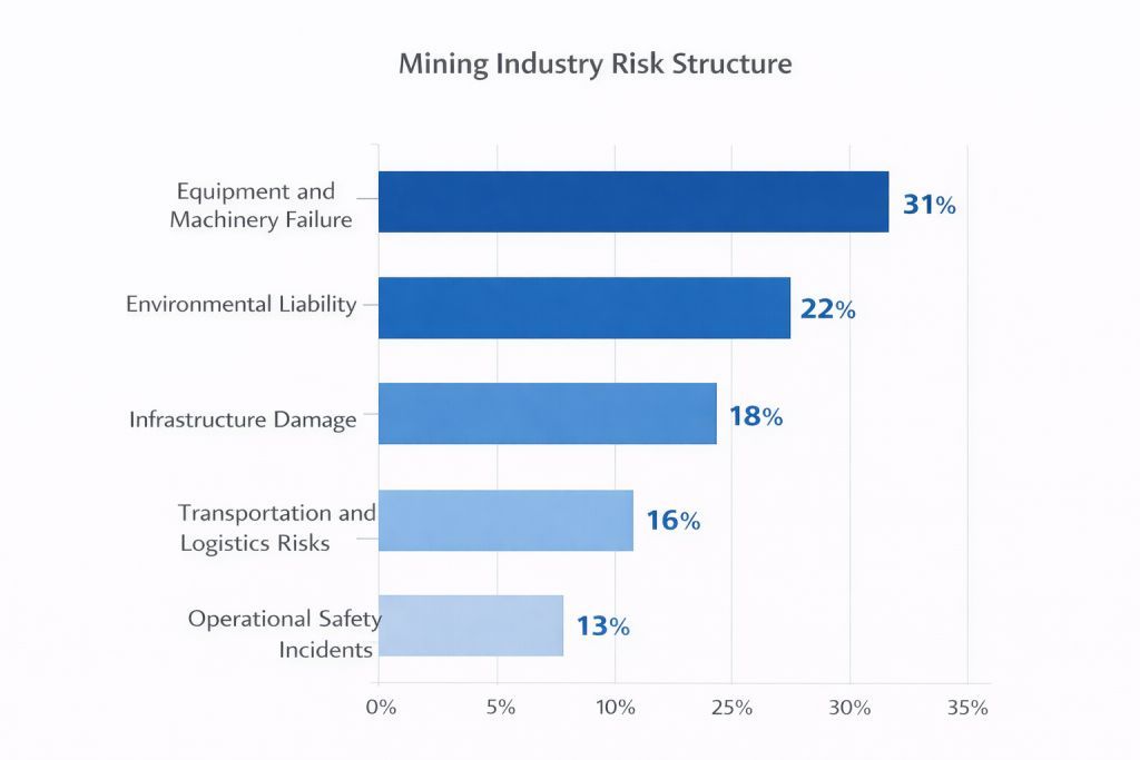 From the perspective of the insurance market, mining projects require highly specialized underwriting expertise. Coverage structures often combine several lines of insurance including property protection, environmental liability coverage, business interruption protection and logistics risk insurance.